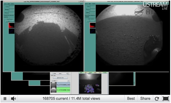Ahora nos llega, un video, ¡un video! (si es que no me lo puedo creer) del descenso de una sonda a marte , estos tíos han grabado el descenso del Curiosity entrando en la atmósfera de otro planeta, a partir del momento en que se desprendió el escudo térmico, por ahora es un vídeo en baja resolución, pronto llegará el de alta definición, es increíble…