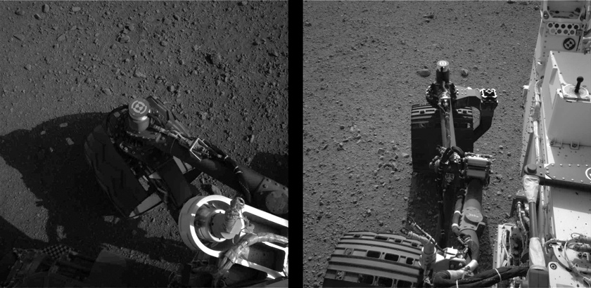 Otro test importante realizado ha sido el del brazo robótico. Era de vital necesidad que la prueba fuera satisfactoria. Recordemos que tiene una longitud de 2,1 metros y que en él se incluyen una cámara, un taladro, un espectómetro, y la maquinaria necesaria para recoger las muestras a analizar.