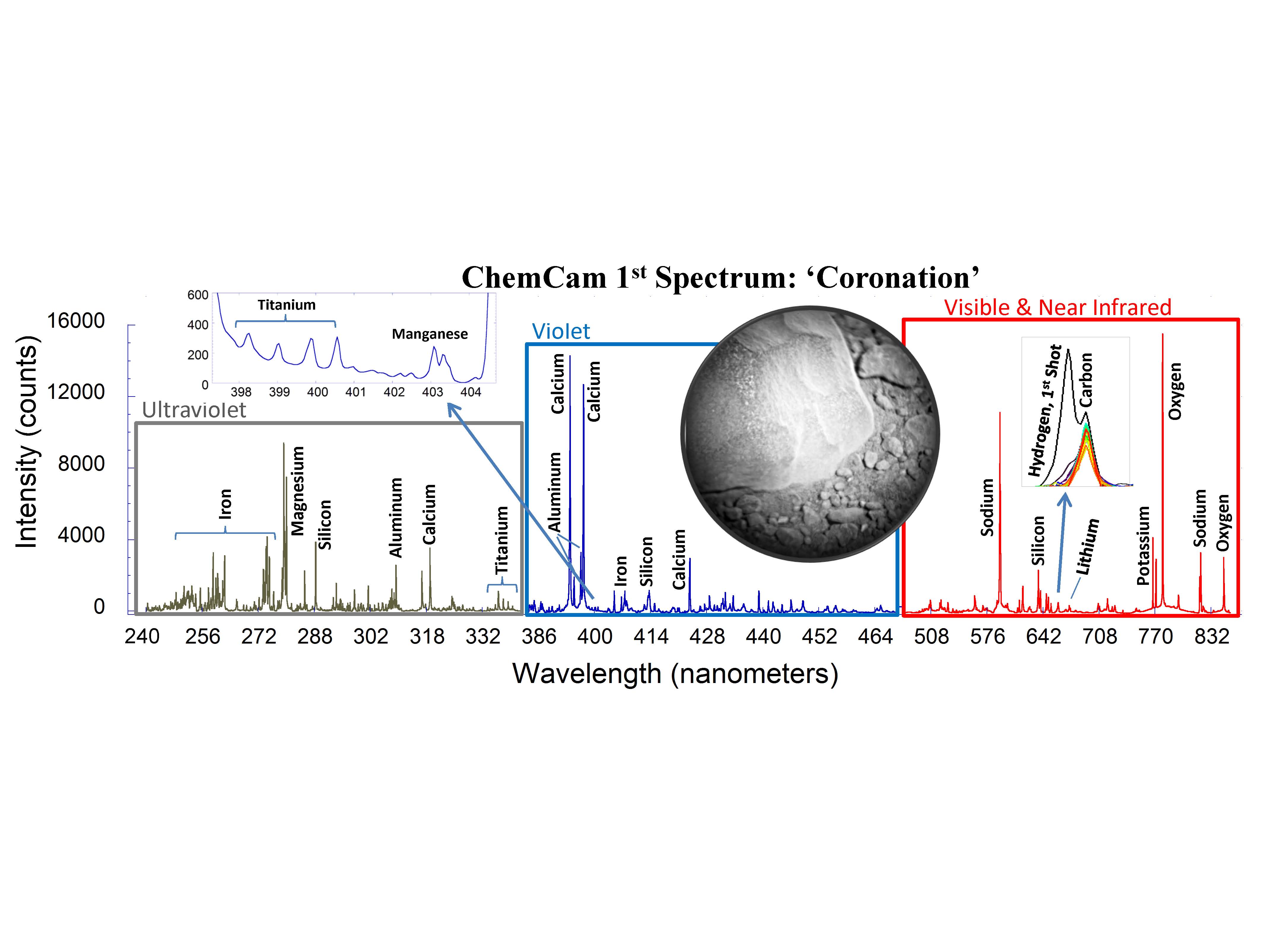 -Espectro conseguido de la primera roca analizada «Coronation».