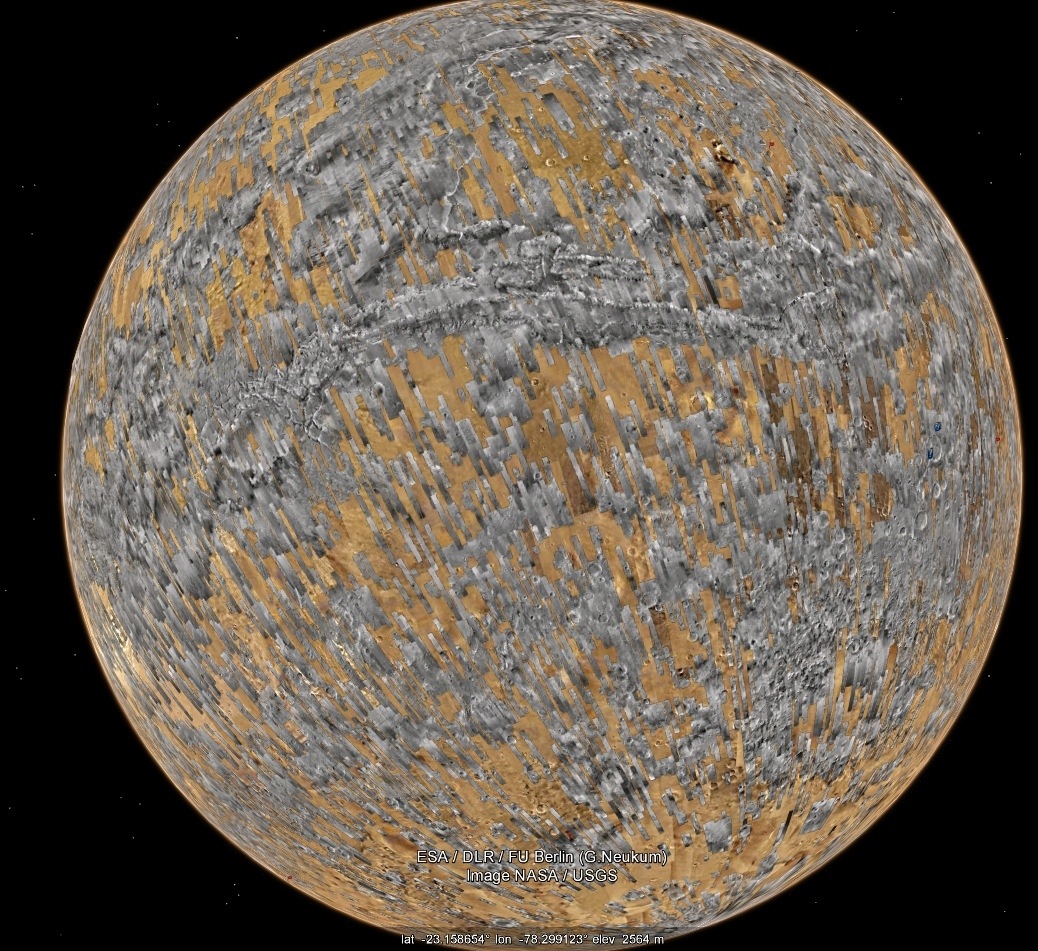 Otra gran actualización la ha recibido de la cámara CTX de la Mars Reconnaissance Orbiter (MRO). En la siguiente imagen se pueden observar en gris los sitios actualizados.