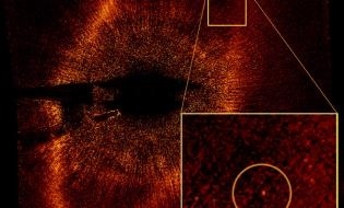 Esta es la primera foto obtenida de un exoplaneta en el año 2005. El planeta es 2M1207b situado a unos 230 años-luz de la tierra y es el punto rojo que se encuentra al lado de la estrella a la que orbita, una enana marrón. El exoplaneta es cinco veces más masivo que Júpiter.