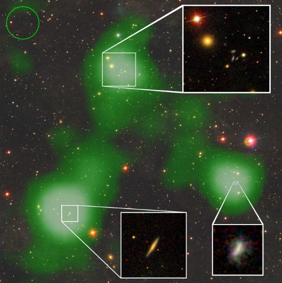 La nube de gas está situada a unos 500 millones de años-luz de la Tierra y establece un «puente» entre varias galaxias de la vecindad.