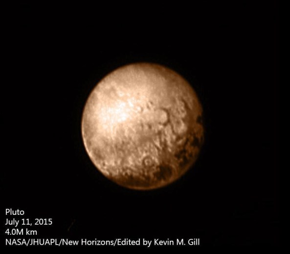 imagen coloreada de Plutón a 4 millones de kilómetros tomada el día 11 de julio