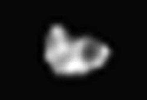 Caronte, la mayor luna de Plutón. Imagen tomada el 13 de julio a 466.000 kilómetros de distancia