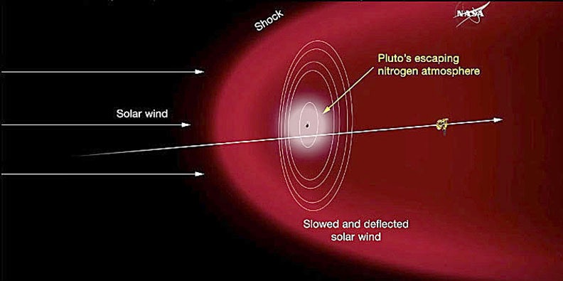 Por último se ha hablado de la atmósfera de Plutón, solo algunos primeros datos recibidos desde la sonda con los que ya podemos confirmar que se extiende hasta 1.600 kilómetros por encima de su superficie. El planeta enano pierde lentamente su atmósfera al espacio, en parte debido a su baja gravedad y al viento solar, el mismo que ioniza moléculas de nitrógeno que terminan formando una cola parecida a la de los cometas.