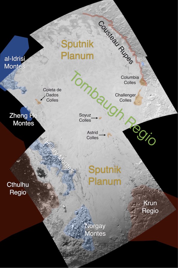 Las cordilleras heladas de Norgay y Hillary, en honor a los primeros escaladores en llegar al Everest o la región oscura de Cthulhu son nombres que van a quedar asociados al planeta enano para siempre.