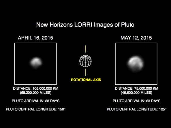 La foto está tomada el 14 de Julio por la cámara LORRI, abarca una zona de unos 210 kilómetros de longitud y tiene una resolución de unos 250 metros. Aun con ese detalle siguen sin verse ni una sola imagen que revele la presencia de cráteres, lo que confirma la extrema juventud del terreno que estamos observando.