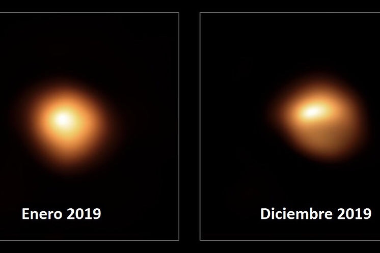 Un poco más lejos, a unos 640 años-luz de distancia, Beltegeuse sigue recuperándose de la drástica bajada de brillo que sufre desde hace unos meses y ya se encuentra al 81% de su luminosidad habitual.